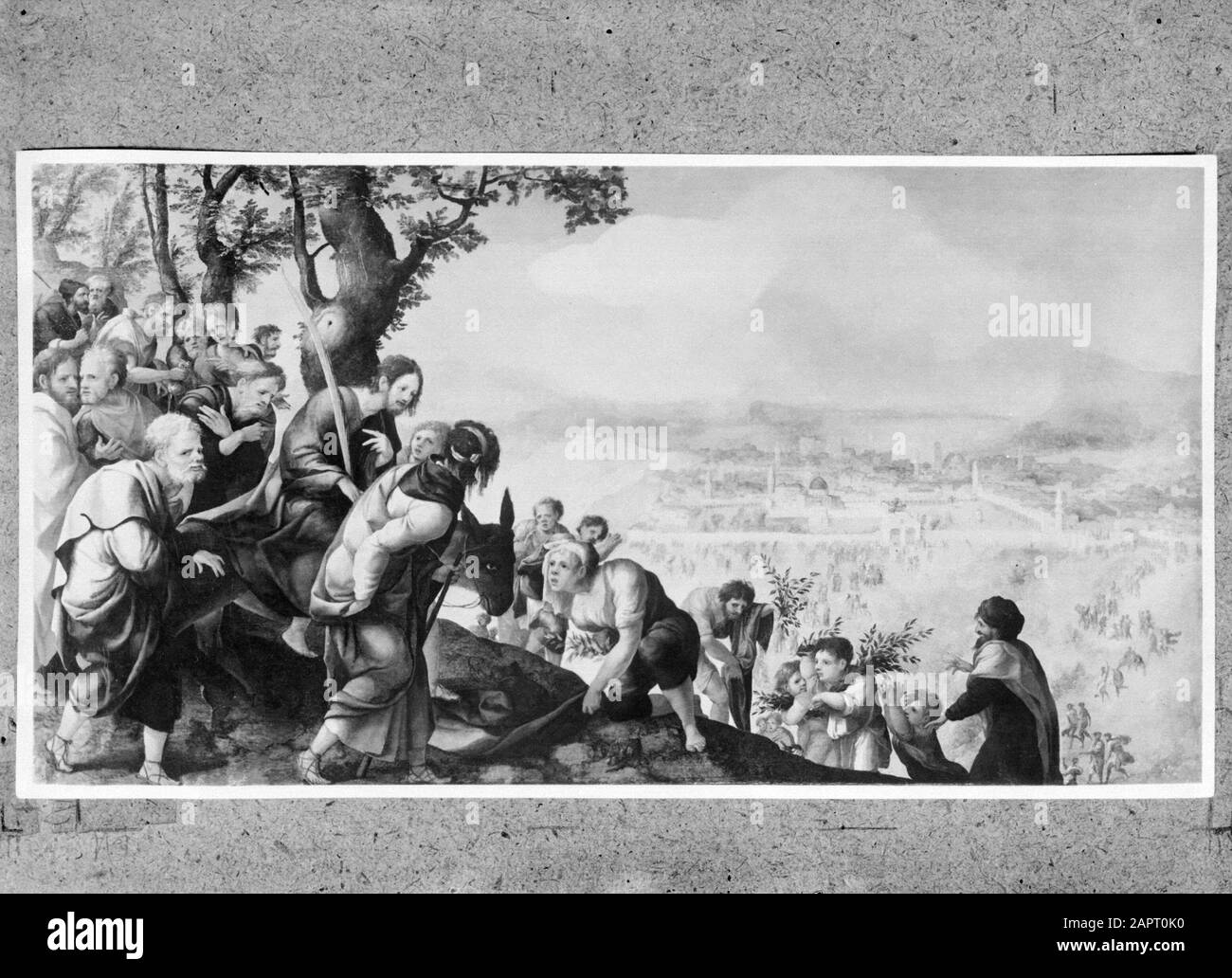 Jerusalén en el arte una pintura que representa la entrada de Jesucristo y sus discípulos a Jerusalén en los Palmases Fecha: 1953-00-00 ubicación: Jerusalén, Jordania palabras clave: Pinturas Fotografía de stock - Alamy